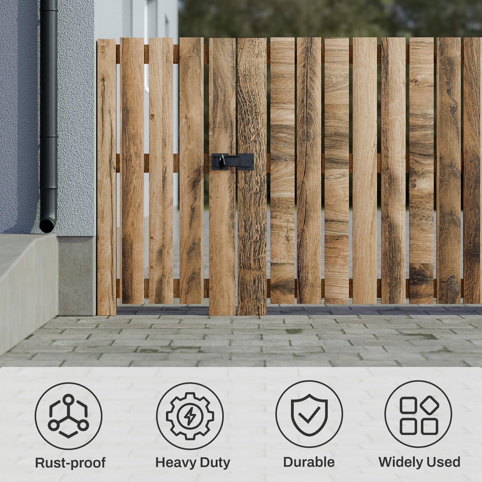 - Sturdy: Made of 3.5mm thickness premium carbon steel metal, this gate latch hardware is qualified to heavy-duty outdoor swinging gates and doors