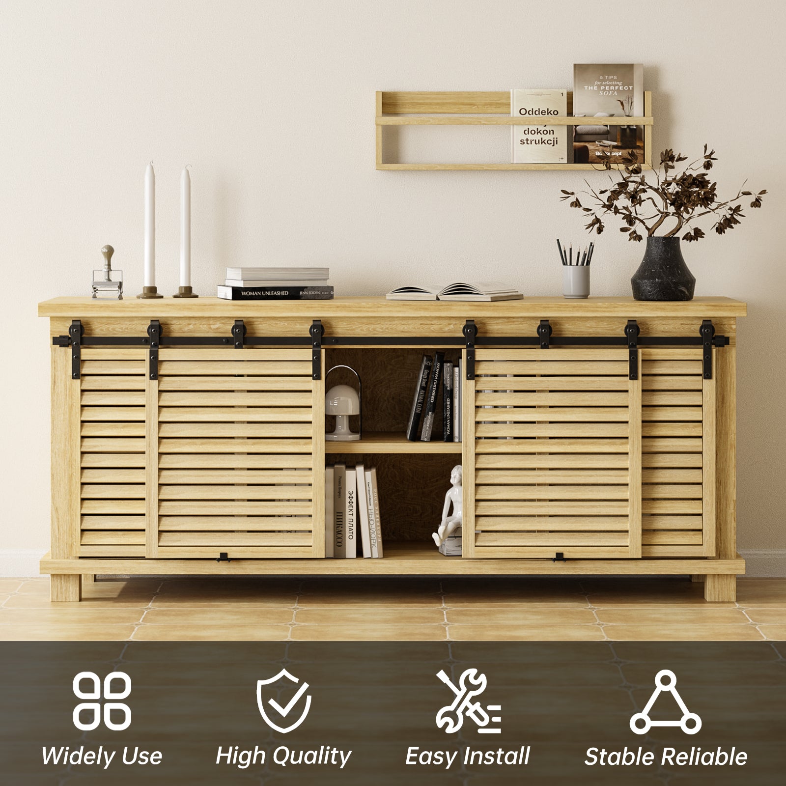 - Widely Used: TOIMIOTOIM bypass mini sliding barn door hardware kit can be used widely. This mini barn door hardware suitable for both modern and rustic style, can apply for cabinet, TV stand, storage, closet, window, pet house, etc.