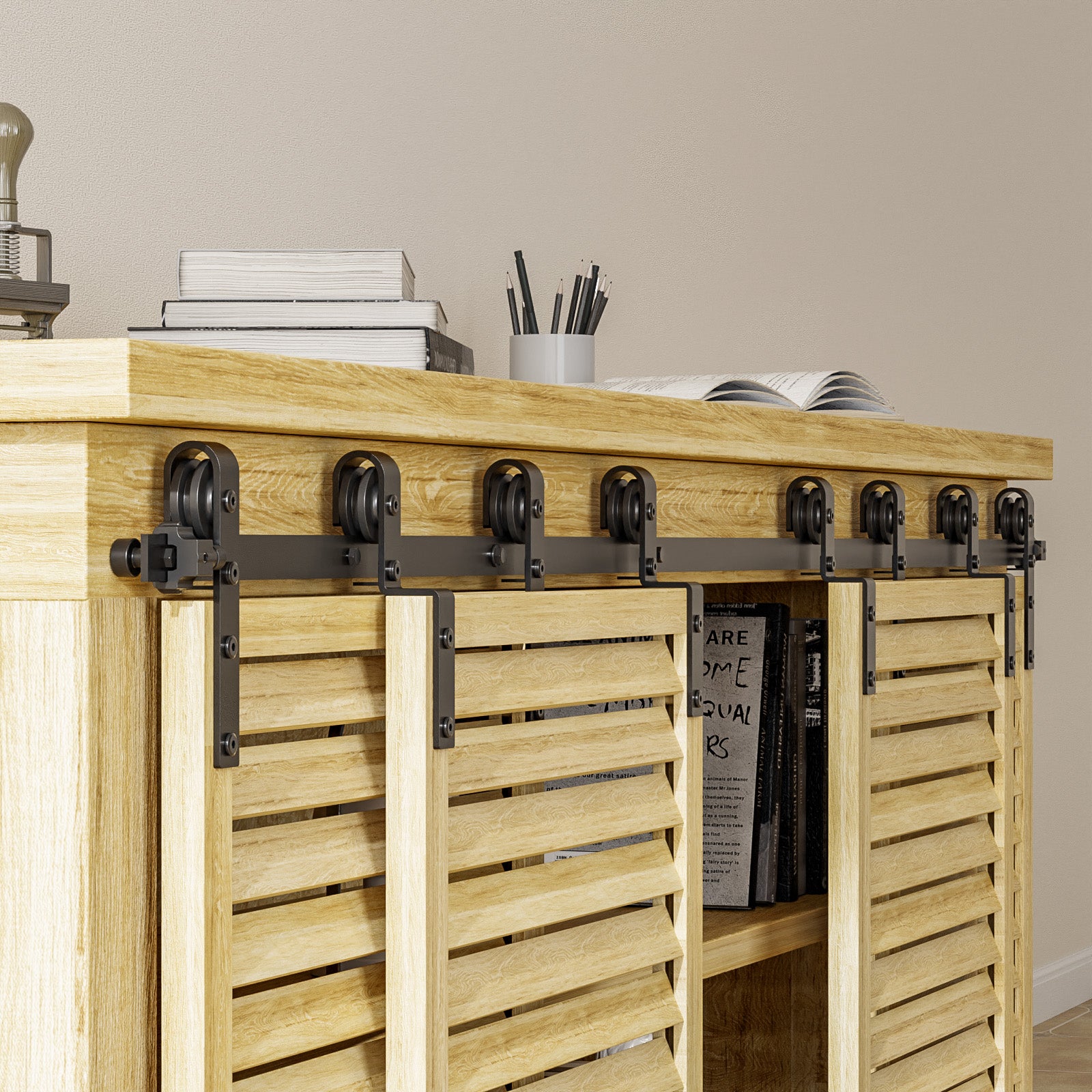 8FT Cabinet Bypass Mini Sliding Barn Door Hardware Kit for 4 Doors, Super Mini Closet Door Track Set, Apply for Storage Window TV Stand Closet (No Cabinet)